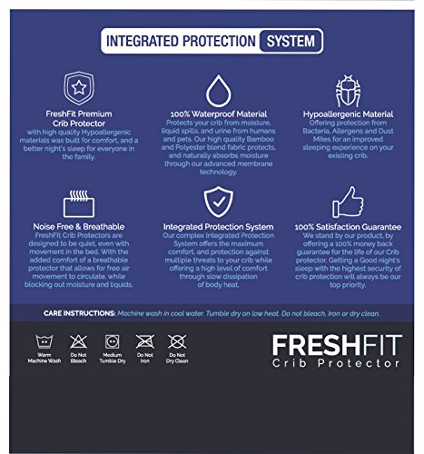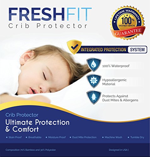FRESHFIT Premium Waterproof Hypoallergenic Noiseless Baby Crib Mattress Protector. Best Protection from Dust Mites, Allergens, Perspiration and Fluid Spills (Crib)