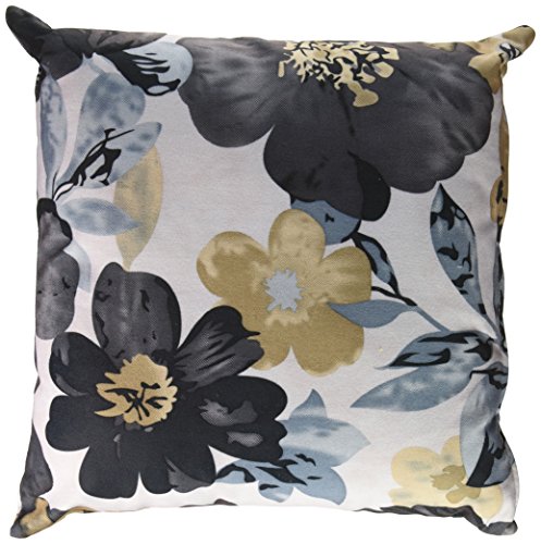 The Oppy Blue pillow in a soft velveteen fabric also features navy and taupe colors in its flower design. Pillow cover is washable and features a hidden zipper. Inside, the pillow fill is overstuffed for added comfort and durability.