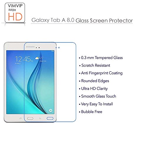 VIMVIP® Samsung Galaxy Tab A 8.0 Tempered Glass Screen Protector - Premium Tempered Glass Screen Protector(2.5D 9H Hardness, Superslim 0.3mm) for Galaxy Tab A 8.0 P350 P355 - The Best Tab A 8.0 Screen Protector To Guard Against Scratches and Drops - Ultra