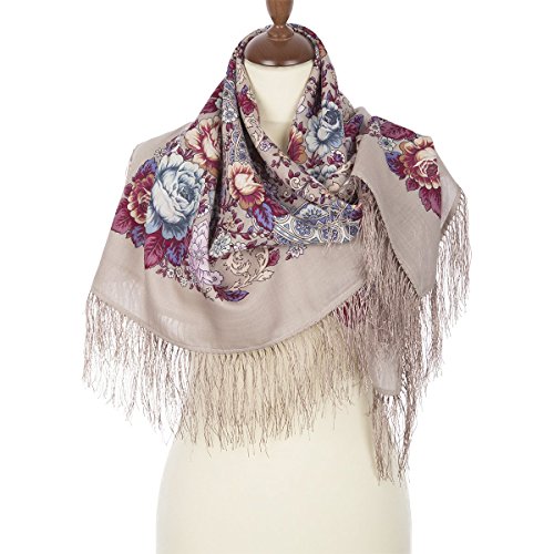 Product DescriptionPavlovo Posad Russian Shawl, Wrap, Scarf, Pashmina, Head Scarf, Neckerchief Beige Wool0