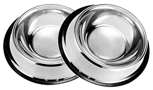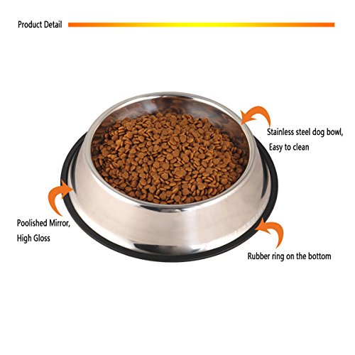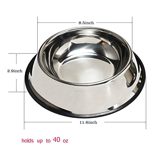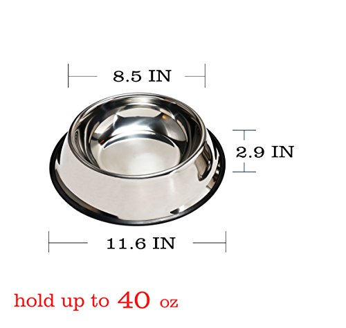 PetCee Stainless Steel Dog Bowls with Anti-slip Rubber Base for Pet Food and Water Holds up to ...