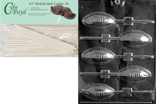 Cybrtrayd 45St50-S026 Football Lolly Sports Chocolate Candy Mold with 50-Pack 4.5-Inch Lollipop Sticks