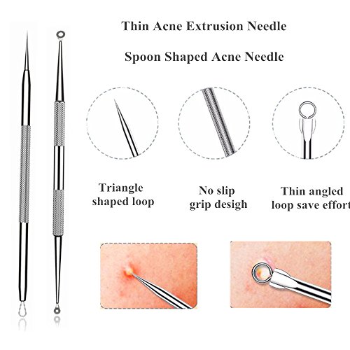 - PREMIUM STAINLESS STEEL - Pimple popper tool kit made of high quality stainless steel with antibacterial coating helps to minimize the risk of bacterial infection.our black head cleaning tool can work on all types of skin.