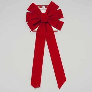 Red Velvet Bow 26in Long 10 Loop Xmas Tie-on Card One Per Order