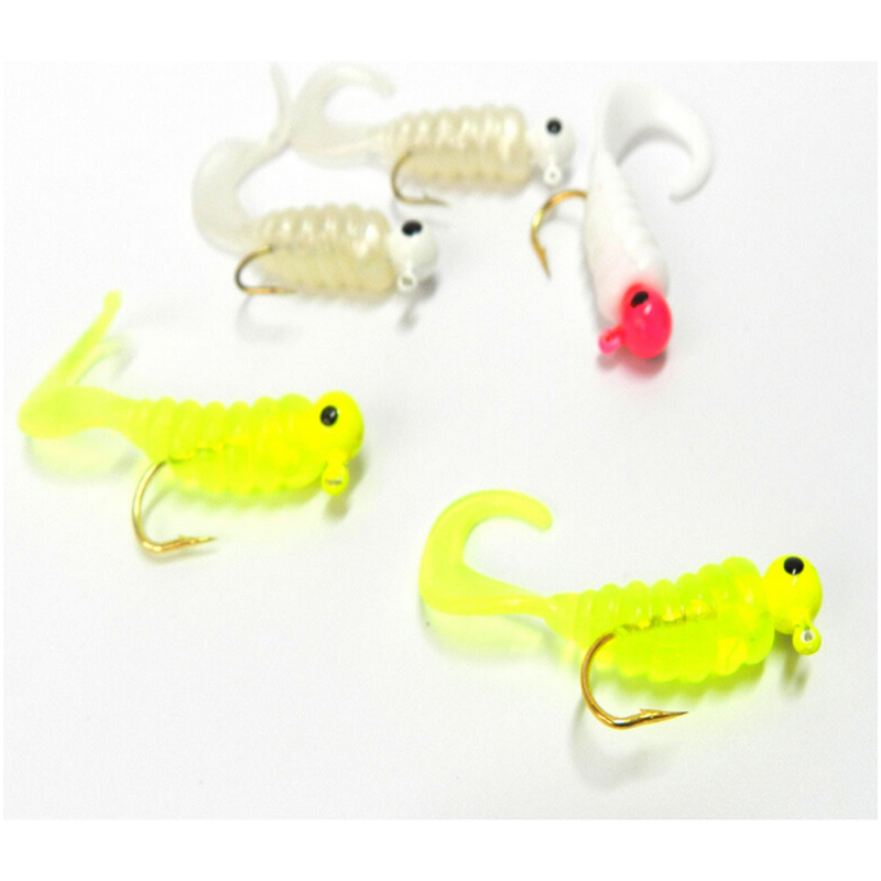 02 Fishing Jigs Lure Sea Bass Bait Soft Bait Jig Head Twirl Tails 7 Pieces Bag Jig Head Rig 7 Pieces Bag Jigs Consist of Jig Head and Soft Lure Weight:1.75g/Lure Color:The colors we send to you at random Notes:The hooks are very sharp, please be careful when using it.Keep it out of children’s reach.