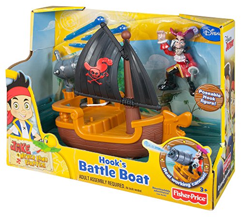 -. Binding : Toy -. Brand : Fisher-Price -. Color : multi/none -. Department : baby-girls -. EAN : 0027084537543 -. Feature : Hook's Battle Boat is ready to sail the seas and look for treasure / Includes an articulated Captain Hook / Launches 2 water projectiles / Hook can hold onto the cannon / Boys will love role playing with Hook -. IsAdultProduct : 0 -. ItemPartNumber : W5264 -. Label : Fisher Price -. LegalDisclaimer : Warning - do not aim at face or eyes.Only use projectiles supplied with this toy.Do not fire at point blank range.Not intended for water play. -. Manufacturer : Fisher Price -. Model : W5264 -. MPN : W5264 -. PackageQuantity : 1 -. PartNumber : W5264 -. ProductGroup : Toy -. ProductTypeName : TOYS_AND_GAMES -. Publisher : Fisher Price -. Studio : Fisher Price -. Title : Fisher-Price Disney's Jake and The Never Land Pirates - Hook's Battle Boat -. UPC : 885536106330 -. Warranty : No Warranty