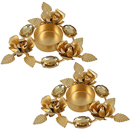 Set Of 2 candle lights holders - A BEAUTIFUL ADDITION TO YOUR DIWALI DECORATIONS With 3 golden flowers,6 golden leaves and 3 golden dazzling beads