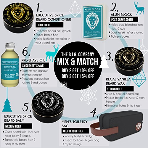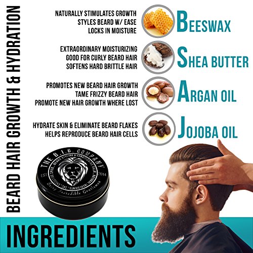 YOUR SATISFACTION?is our number 1 priority!?We have a 100% Money-Back Guarantee, so let us know if anything has gone wrong with your purchase. HOLD:?Our Executive Spice Beard Balm has a medium hold to help keep your beard hair in place! We designed our Beard Balm to help you look your very best with a nice and tame beard. BEARD GROWTH:?If you find you're having a hard time?growing a long and strong beard, the Executive Spice Beard Balm helps to promote growth through deep hydration reducing breakage and improving beard hair overall. FREE BEARD HACKS BIBLE:?This is a great addition to your Beard Grooming Kit! Find out all the Beard tools you need to maximize your beard grooming game. AN EPIC GIFT:?Are you looking for a?Beard Grooming Set or Balm for someone special? The B.I.G. Beard Balm comes in a stylish box for easy gifting and giving that little, "WOW!" factor when they open your gift. ? HOW TO USE THE B.I.G. BEARD BALM ? Step 1: Use the back of your thumbnail to scrape the balm so that half your nail is covered. Step 2: Put the balm in the middle of your palms and rub it warm. Step 3: While the balm is warm and melted, apply to your beard. Work it in thoroughly down to the skin. Step 4: Comb your beard and moustache to your liking. 0 |