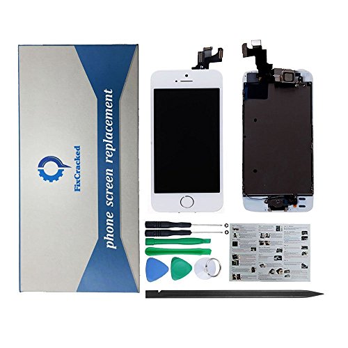 FixCracked iPhone 5S LCD Display Screen Touch Digitizer Full Assembly Replacement with Home Button+Front Facing Camera+Ear Speakers+Repair Tools,White