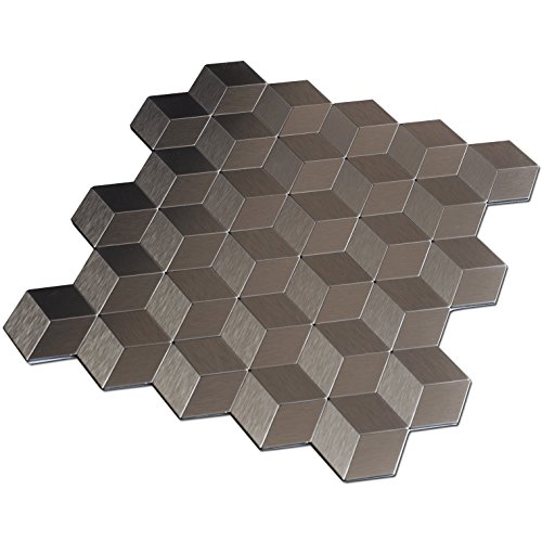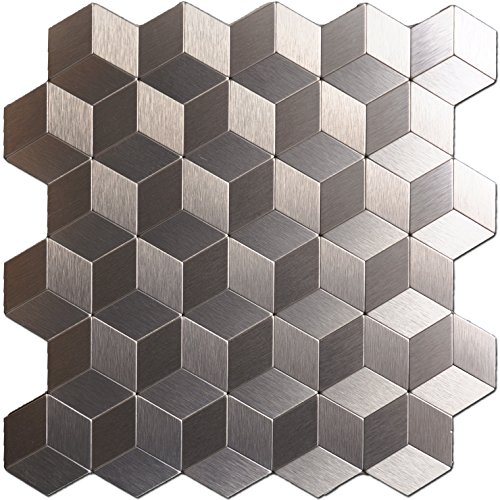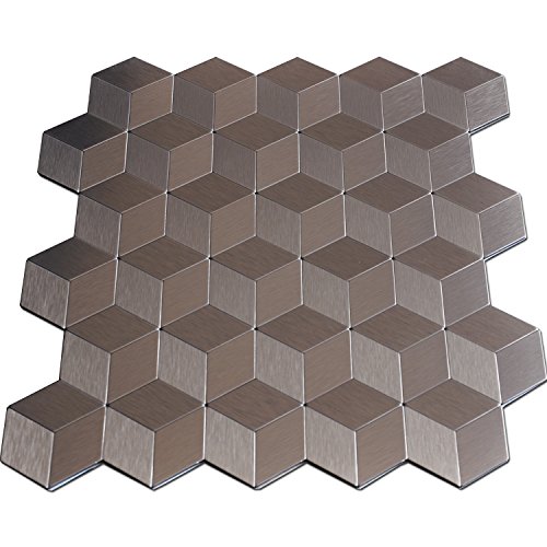 Art3d 12" X 12" Peel & Stick Metal Decorative Wall Tile, Cubic Copper Metal