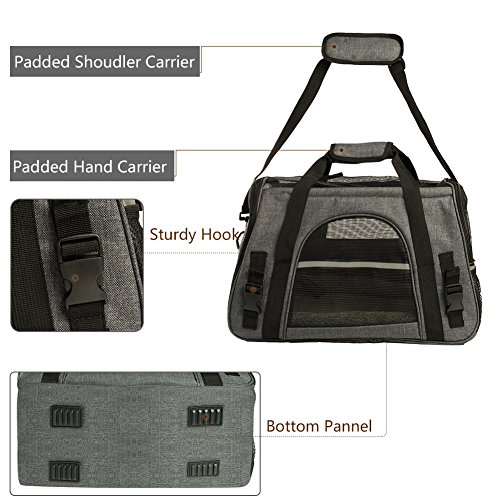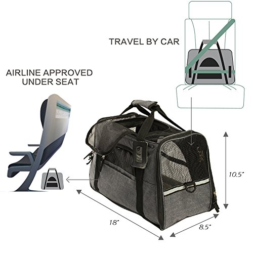 -. Binding : Misc. -. Brand : HEXIN -. Feature : Before purchasing please measure your pet, Recommended max load of 15 lbs (6.8 kg). Please do not choose your carrier only based on weight--please reference your pet's length and height in selecting a carrier size- LENGTH: neck to butt less than 16"; HEIGHT: floor to top of shoulder less than 10"; MAXIMUM WEIGHT: 15 LBS. / Soft-sided pet carrier measures approximately 18x8.5x10.5 inches (LxWxH) fits for small dogs and cats, also this pet carrier works well when traveling by plane or car or for routine trips to the vet. / Adjustable shoulder strap comes included for hands-free carrying. / Cozy fleece pet bed can be completely removed. / Features front and top openings, which allow for effortless entry and stress-free loading. -. Label : HEXIN -. Manufacturer : HEXIN -. PackageQuantity : 1 -. ProductGroup : Pet Products -. ProductTypeName : PET_SUPPLIES -. Publisher : HEXIN -. Studio : HEXIN -. Title : HEXIN Travel Pet Carrier,Soft-sided Pet Carrier Airline Approved with Fleece Bed for Small Dogs and Cats