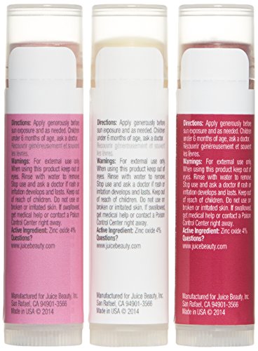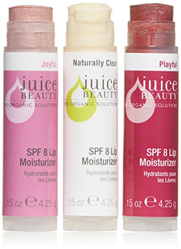 -. Binding : Health and Beauty -. Brand : Juice Beauty -. Department : 22 Oral Care -. EAN : 0834893000102 -. Feature : Protects and moisturizes for sweet, kissable lips. -. Label : Juice Beauty -. LegalDisclaimer : This product can only be shipped to the following countries: United States, Canada -. Manufacturer : Juice Beauty -. Model : 477910 -. MPN : AAJ-037 -. NumberOfItems : 1 -. PackageQuantity : 1 -. PartNumber : AAJ-037 -. ProductGroup : Prestige Beauty -. ProductTypeName : LUXURY_BEAUTY -. Publisher : Juice Beauty -. ReleaseDate : 2011-05-25 -. Size : .15 oz each -. Studio : Juice Beauty -. Title : Juice Beauty SPF 8 Lip Moisturizers -. UPC : 834893000102