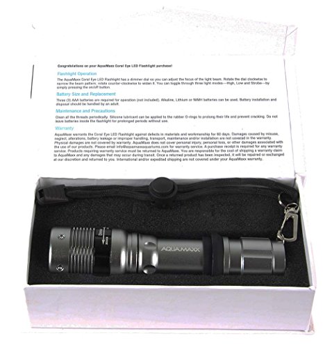 Bright blue spectrum brings out coral fluorescence Thermo-Protection circuitry lowers output if the flashlight overheats: helps to extend the life of the LED 3 operating modes:
