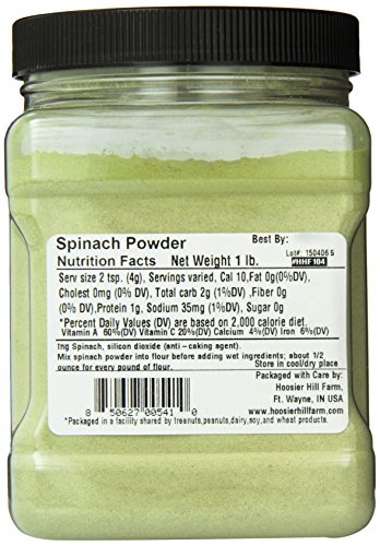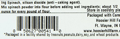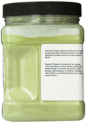 Spinach Powder is wonderful for adding color and flavor to fresh pasta, noodle and bread doughs. It can also be used in yeast breads, quick breads or muffins. Combine with herbs or sun-dried tomatoes for a light, savory flavor.