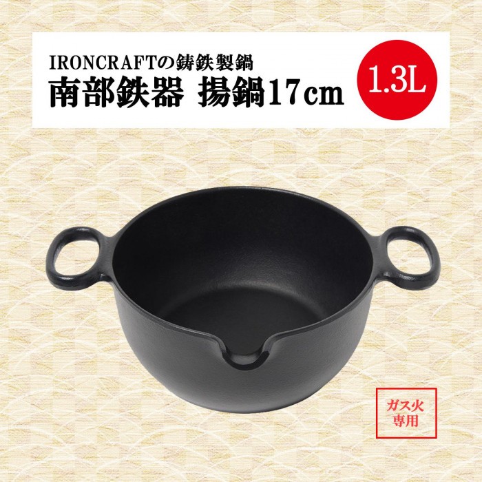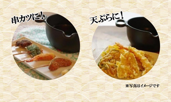 | 鍋の厚さが薄いと、油の温度変化などで均等に具材に火が通りにくくなります。南部鉄器の鋳鉄製の鍋は厚みがあるので、温度変化が少なく美味しく揚げられます。 |