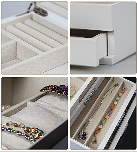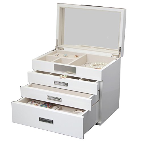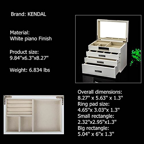 Kendal Quality Wooden Jewelry Box Case Storage with Piano Paint (Cream)