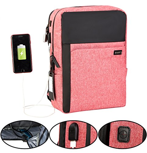 CAPACITY:3 main pockets 7 inner small pockets 2 side pockets,have shock proof laptop interlayer can protect the computer.Small zipper bag more subtle,can put passport,credit card.There's a lot of space in the middle pocket,you can put the clothes,books and pens in it,The front pocket is convenient for taking things,the side pockets can put your water bottle and umbrella.