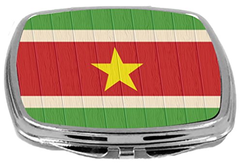 Rikki Knight Compact Mirror on Distressed Wood Design, Suriname Flag, 3 Ounce