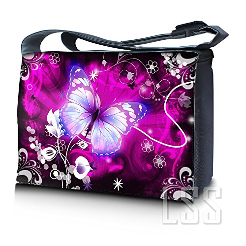 -. Binding : Personal Computers -. Brand : LSS -. Color : Purple -. EAN : 0700987138689 -. Feature : Unique artwork design on premium polyester material / Main padded laptop compartment with Velcro flap / All in one spacious organizing laptop carrying messenger bag allows you to fit additional books, reading tablets, music players, power cord, mouse and more! / 2 zipper pockets: 7"H x 10.5"W and 5" x 10.5" with many accessories pockets and 3 pen holders / Size: 16.5" x 11.5" x 4.5" -. Label : LSS - Laptop Skin Shop -. Manufacturer : LSS - Laptop Skin Shop -. ProductGroup : Personal Computer -. ProductTypeName : CARRYING_CASE_OR_BAG -. Publisher : LSS - Laptop Skin Shop -. Studio : LSS - Laptop Skin Shop -. Title : LSS 15 15.6 inch Laptop Padded Compartment Shoulder Messenger Bag Carrying Case for 14" 15" 15.6" or Smaller Size Notebook - Butterfly Purple -. UPC : 700465610096