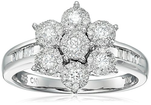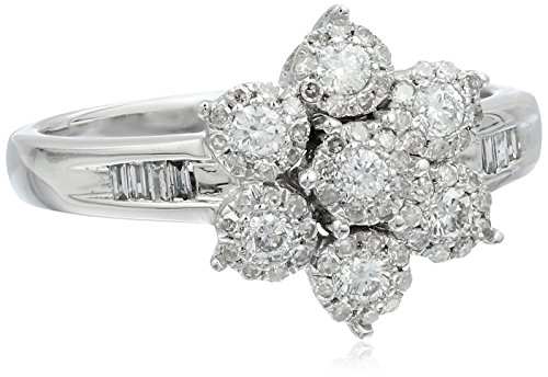 -. Title : 10K White Gold Diamond Cluster Flower Ring (1/2 cttw, H-I Color, I2 Clarity)