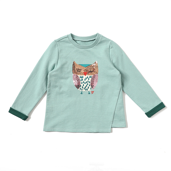 소재-겉감 : 면 100 배색1 : 면 95 폴리우레탄 5 배색2 : 면 100 색상-민트 사이즈-110,120,130,145,155,165상세설명-민트 컬러가 화사하게 돋보이는 기본 티셔츠로 깜찍한 부엉이 캐릭터가 포인트 입니다.