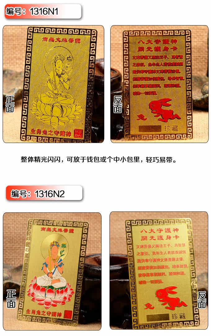 开运镀金箔文殊菩萨本命佛金卡护身符属兔者守护神