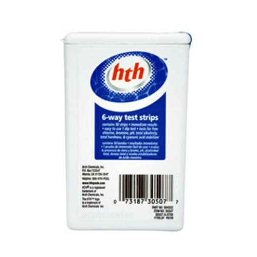 -. Feature : 6-way test strips / Multi purpose / Tests for total available chlorine, bromine, pH, total alkalinity, total hardness & cyanuric acid stabilizer / Each kit contains 30 strips