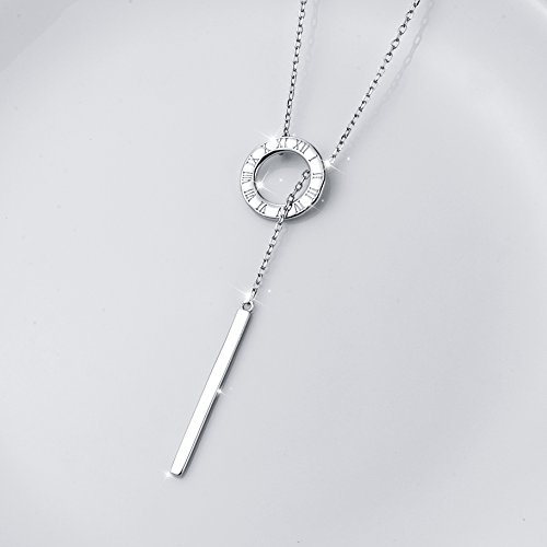 Adjustable Round Circle Y Shaped Lariat Necklace. Fit for any Cloth and Suitable for any Occassion. Simple Design Engraved with Roman Numerals Makes it more Special and Unique.