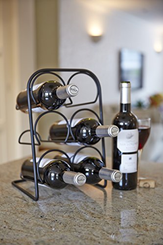 Hahn Pisa Metal Wine Rack Holds upto 6 Bottles Freestanding in Satin Black