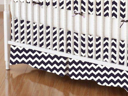 -. Title : SheetWorld - MINI Crib Skirt (24 x 39) - Navy Chevron Zigzag - Made In USA