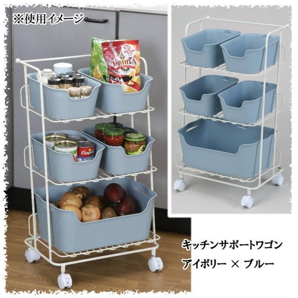 | 大小2種類のバスケットが使いやすい、台所を仕事をサポートしてくれるワゴンです。 |