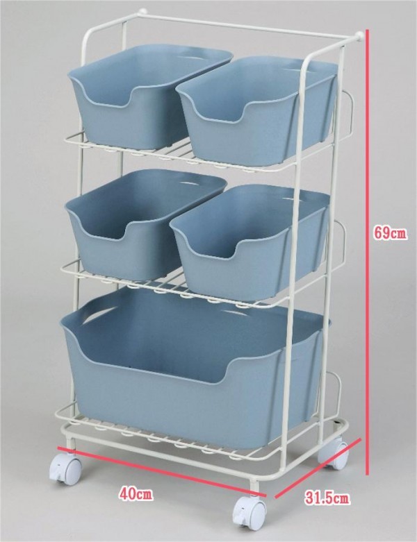 | 仕様 | 完成品 耐荷重:(上・中段)各3kg、(下段)8kg 各バスケットの大きさ:(小)18×25.8×10.5cm、(大)38.6×25.8×15.5cm |