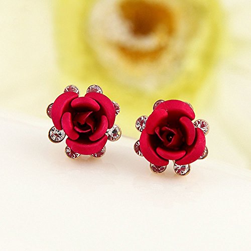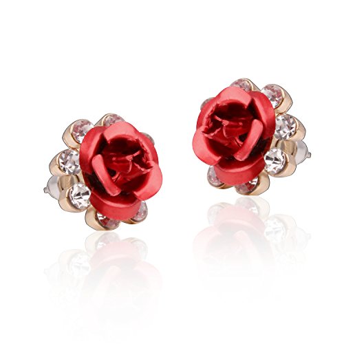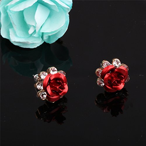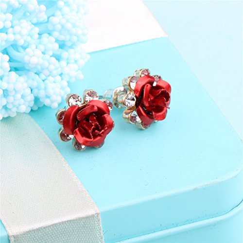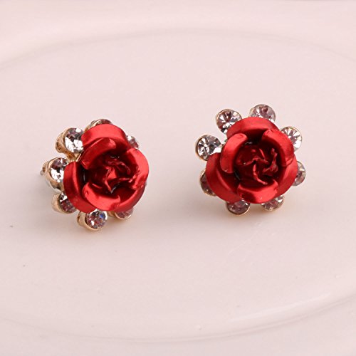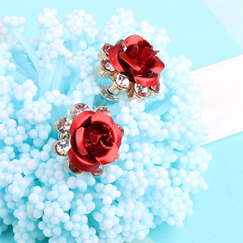 White twinkling zircon accented blue /red rose,Material: alloy