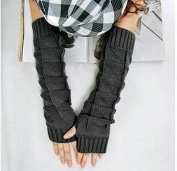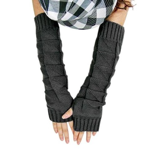 JOVANA Women Knitted Braided Long Winter Fingerless Gloves Wrist Warm Warmer Mitten (Dark Grey)