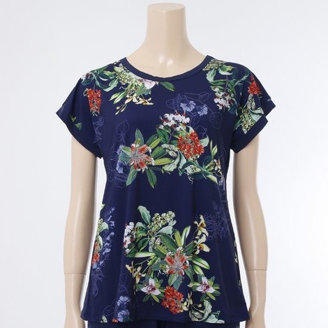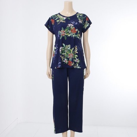 트렌디한 보타니컬 프린트를 이용한 여성 홈웨어 입니다 부드럽고 가벼우면 신축성이 우수하며