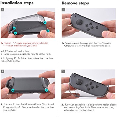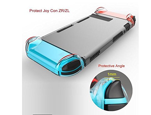 -. Feature : Specifically designed:Compatible with Nintendo Switch perfectly. Showcase your Nintendo Switch with the ultimate clear case that is both stylish and comfortable to hold in the hand. / Perfect Protection: The 4-Point rear guard protects the Joy Con (ZL and ZR) from scratches by safely lifting it 1mm the surface. Keep your device from everyday bumps, scratches, dust and fingerP.R.Ints / Comfortable Ergonomic: Provide you with different visual feeling, easy to grip and light. Compact and portable, convenient to carry everywhere you go with this case. / Three segment Design: The case is divided into three parts: one for Switch tablet, the others for left and right Joy Con, snug fit Nintendo Switch. / Easy to install: Cut out for controllable buttons for the easy access without taking your Nintendo Switch out of the case.
