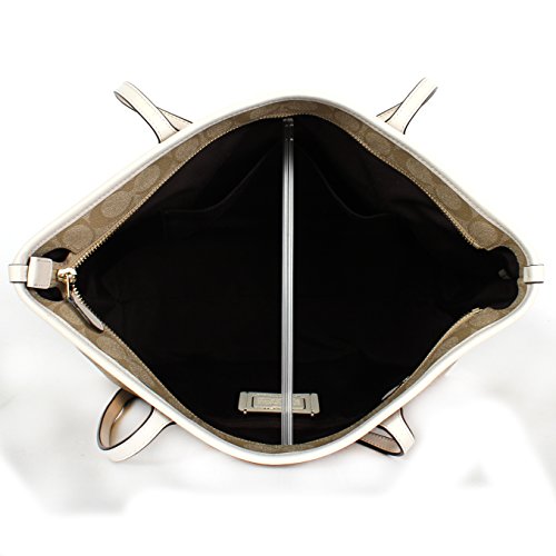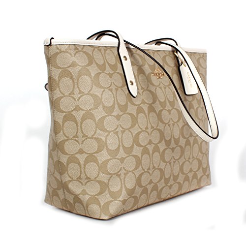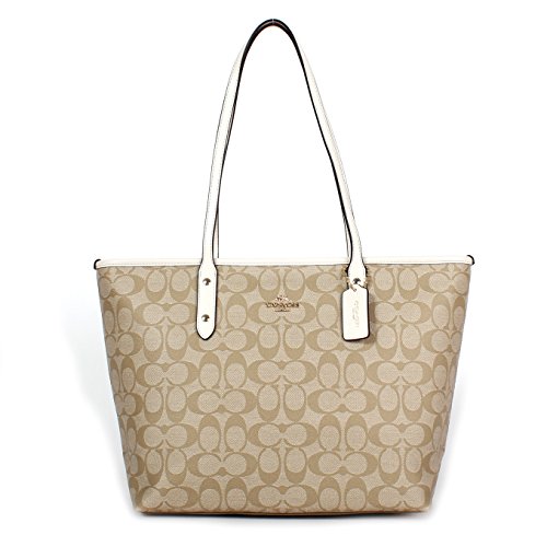 Coach Signature PVC City Zip Tote F58292 Light Khaki/Chalk
