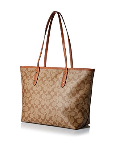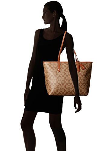 Coach Signature City Zip Tote - Khaki/Saddle