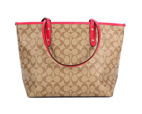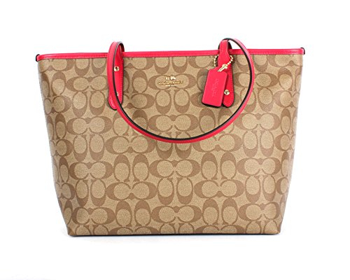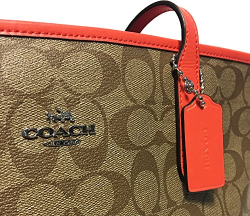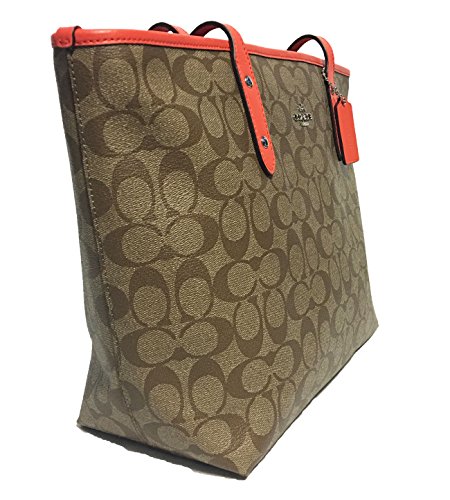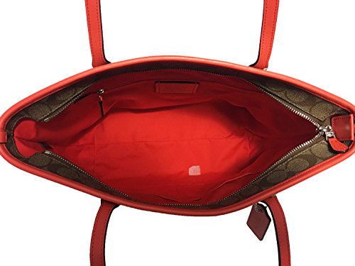 Coach Signature City Zip Tote Bag Handbag (SV/Khaki/ Bright Orange)