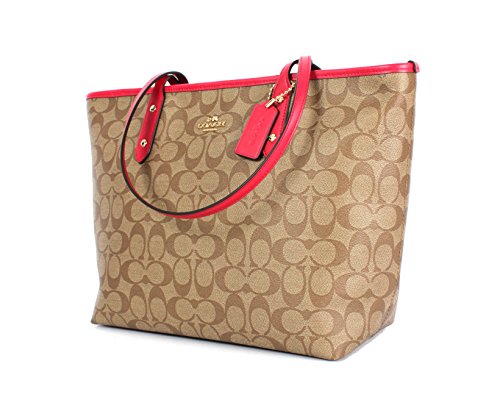 Coach Signature PVC City Zip Tote F58292 Khaki/Bright Pink