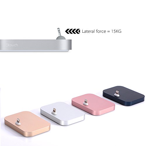 Available in four metallic finishes, the Stouch iPhone Lightning Dock perfectly matches your iPhone 5 6 6s Plus. Choose from silver, Navy Blue, gold, and rose gold.