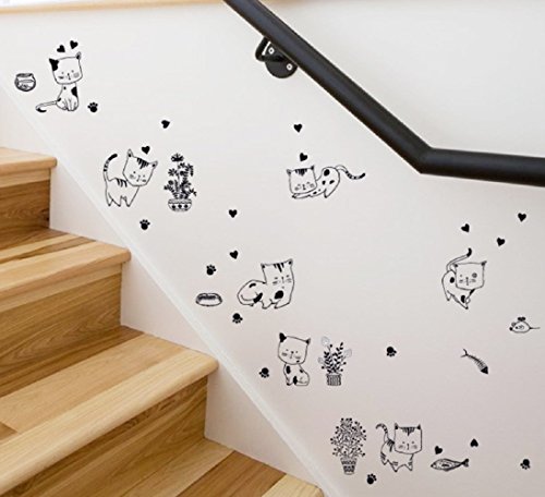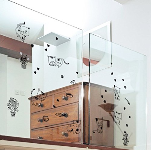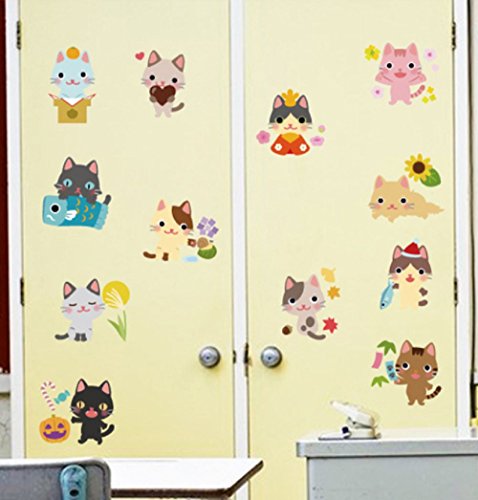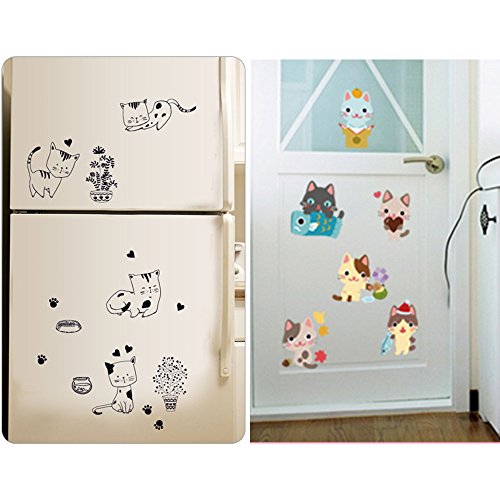 Adam Victor 2 Pcs Removable Creative 3D DIY Cute Cartoon Black Cats and Colorful Cat Totoro Wall Decals Kids Room Decorations Art Décor Stickers Nursery 3D PVC Decal Bedroom Window Sticker, 2 styles
