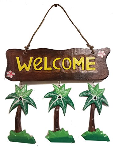 New Unique 15" x 10" Handcarved "Welcome" Sign with Hanging Palm Trees!