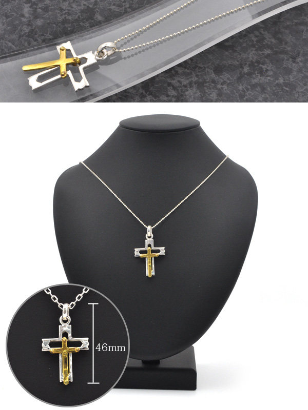 シルバーの型抜きのクロスとゴールドのクロスが重なりあってゆらゆら揺れます。