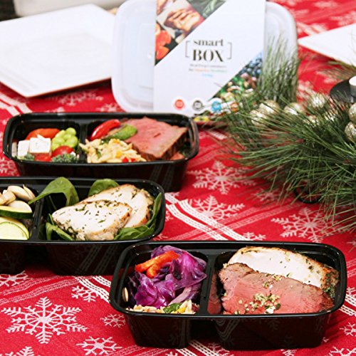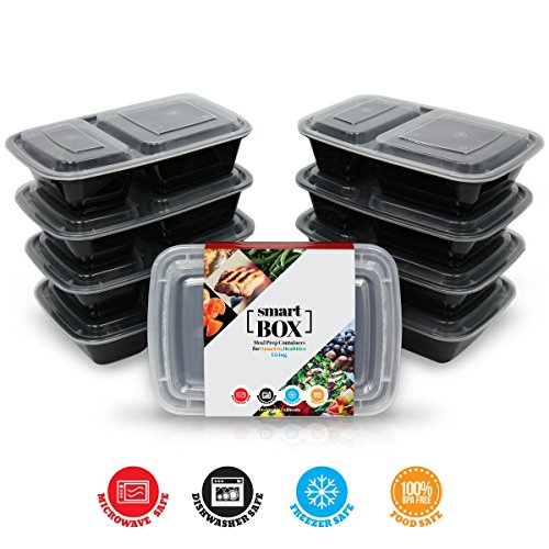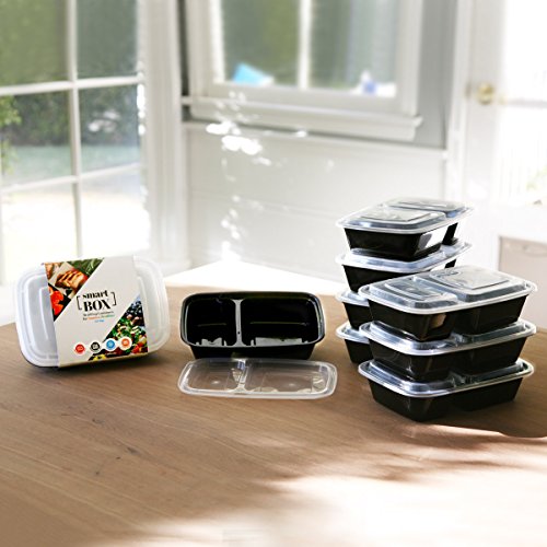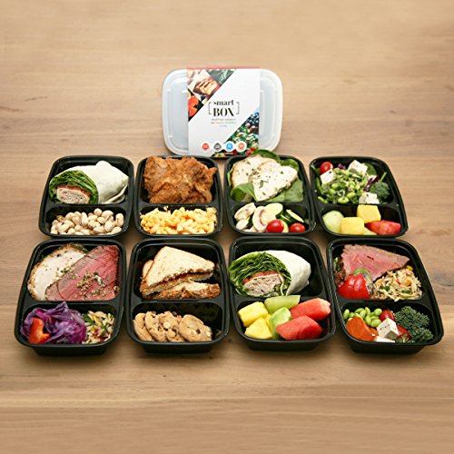 FLASH SALE!! THE SMART BOX TWO COMPARTMENT MEAL CONTAINER LEAKPROOF LID DURABLE & STACKABLE BENTO BOXES REUSABLE, LIGHTWEIGHT, CHEAP TUPPERWARE ALTERNATIVE DISHWASHER, MICROWAVE & FREEZER SAFE, SET OF 8