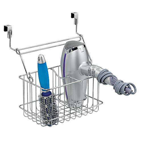 InterDesign Classico Over Cabinet Hair Care Tools Holder – Removable Storage Caddy for Blow Dryer, Curling Wand and Flat Iron, Chrome