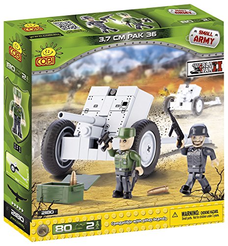 Build the German anti-tank gun 3.7 cm PAK 36! The set includes 80 pieces and 2 figures ready for ground battle and accessories. It features an anti-tank gun that made it's debut during the Spanish Civil War. The gun was most effective against the common light tanks. During WWII it gained the nickname "Anklopf". Reinforce your troops with Small Army tanks, planes, helicopters, military trucks or take command of a military battleship and create your own army with COBI blocks. This item is a great addition to the extended Small Army collection!.