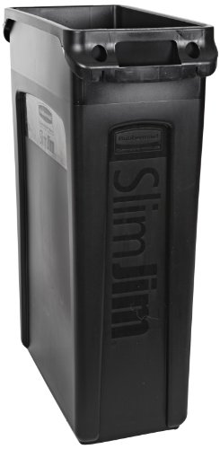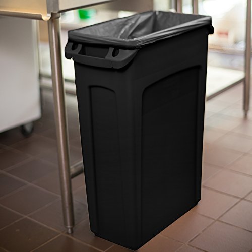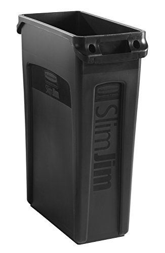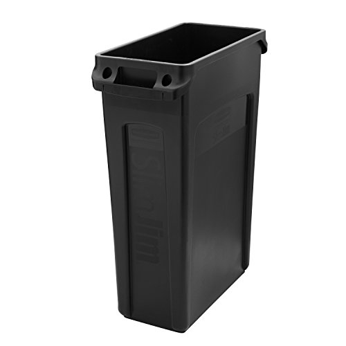 Rubbermaid Commercial Vented Slim Jim Trash Can Waste Receptacle, 23 Gallon, Black, Plastic, FG354060BLA