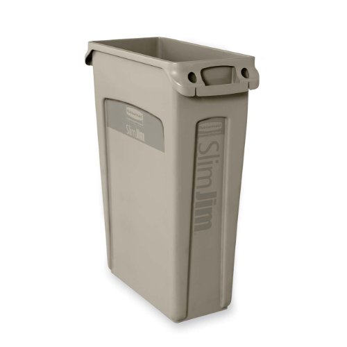 Rubbermaid Commercial Vented Slim Jim Trash Can Waste Receptacle, 23 Gallon, Beige, Plastic, FG354060BEIG