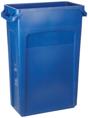 Rubbermaid Commercial Vented Slim Jim Recycling Bin Waste Receptacle, 23 Gallon, Blue, Plastic, FG354007BLUE
